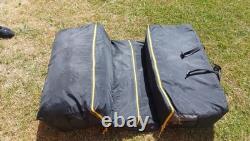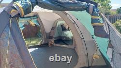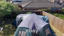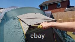 Condition: Used but in good condition - no major damage, all zips and poles intact?? Colour: Green and grey with yellow detailing?? Extras: Built-in groundsheet for added protection This tent provides loads of space, making it ideal for longer camping trips or larger families.